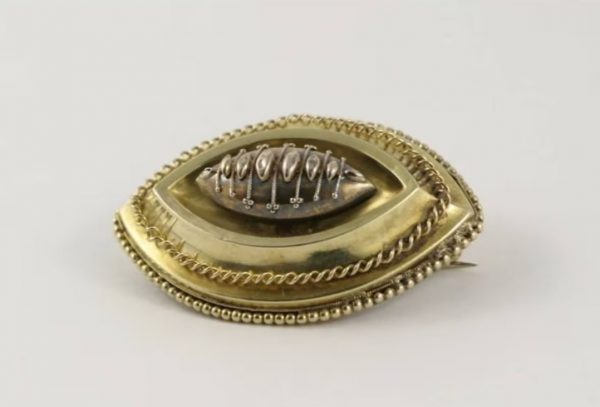 答案如潮水般涌来,因为它是一枚哀悼别针—— 一件旨在纪念已故之人的珠宝。该物品通常带有与死者相关的铭文,并且通常包括一绺头发。