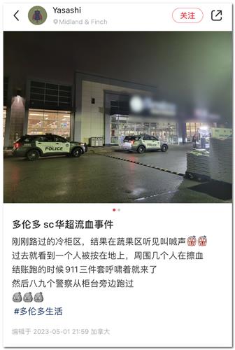 就在昨晚(1日)8点55分左右,多伦多士嘉堡Brimley和Huntingwood交口的一家华人超市发生了流血案件。