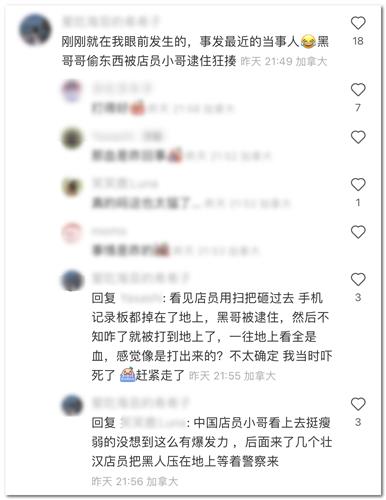 “最开始好像是一个华人店员发现他偷东西然后开始拿拖把打他。”