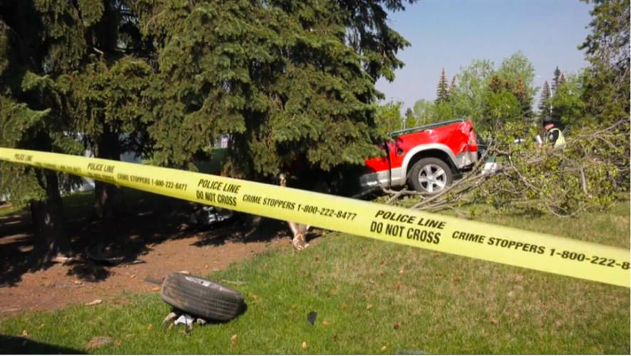 警方证实,皮卡司机于周三早上被捕,一辆红色Dodge Ram卡车在米尔伍兹镇中心(Mill Woods Town)附近、64街和66街之间的23大道草坪上被拖走。