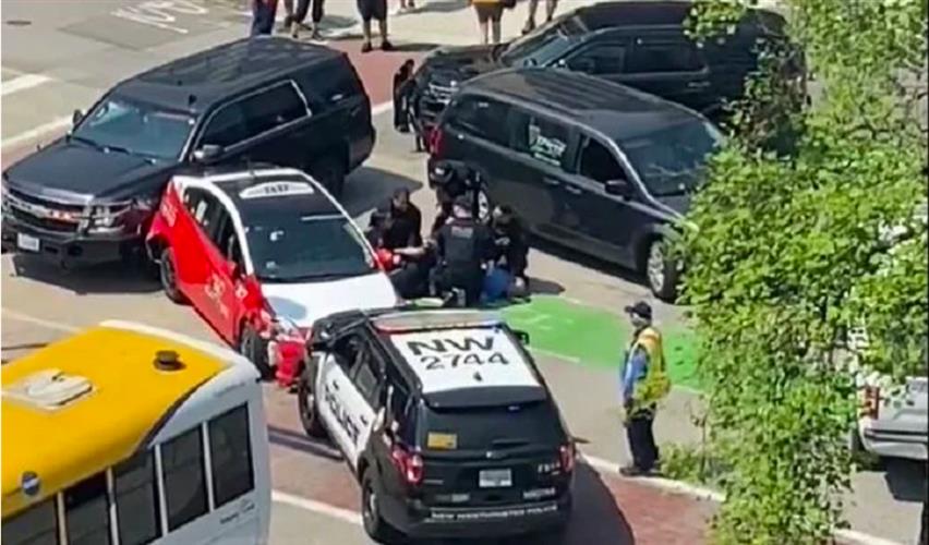 视频似乎显示出租车最终试图在十字路口掉头,此时已经被警察封锁,司机被持枪警员拖出驾驶位制伏。