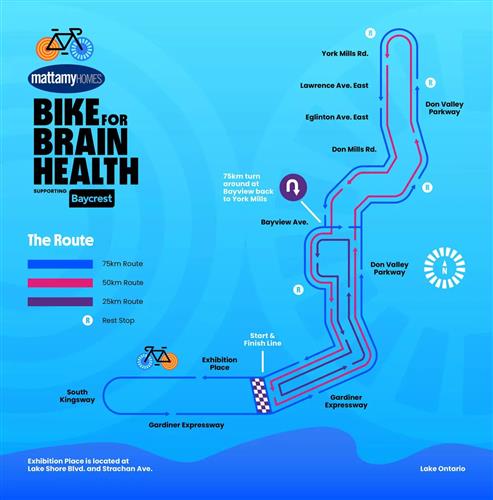 Baycrest第二届Mattamy Homes Bike for Brain Health将于下月4日,在多伦多Don Valley Parkway和Gardiner Expressway举行,届时将关闭部分主要高速公路。