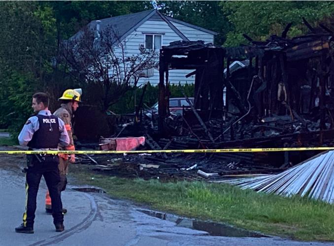 被火烧毁的房屋黑色框架目前被黄色警用胶带围住。