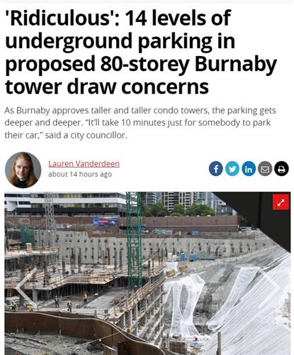 据Burnaby Now报道,本拿比位于Lougheed 的一个巨型地产开发项目,80层大厦,地下停车场多达14层,近50米深,本周在本拿比市议会引起了关注。