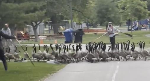 周二的任务是解放多伦多西部的沙滩,从视频中看到它们紧密的队形来看,这个特殊的小组显然有一些驱赶加拿大鹅的经验。