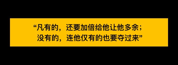 《新约·马太福音》中有一则寓言:“凡有的,还要加倍给他让他多余;没有的,连他仅有的也要夺过来”。