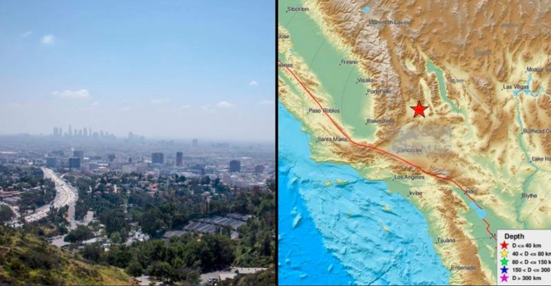 美国地质局监察发现,震央位于Searles山谷的沙漠中,这个地方距离洛杉矶大约150英里,洛杉矶当地民众也感受到强烈震感。
