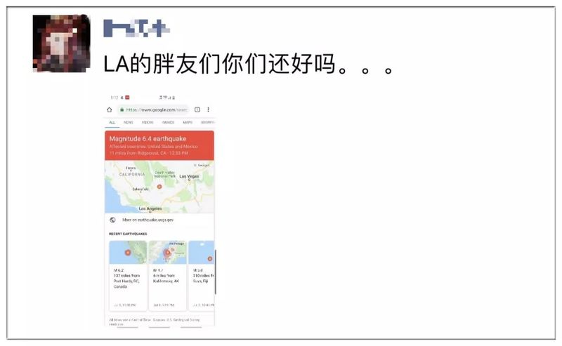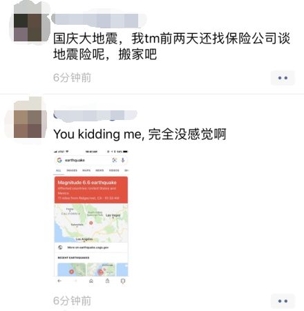一时间,主页君朋友圈里的留学生们炸开了锅,大家纷纷表示“美国的独立日这天,被地震晃醒”。