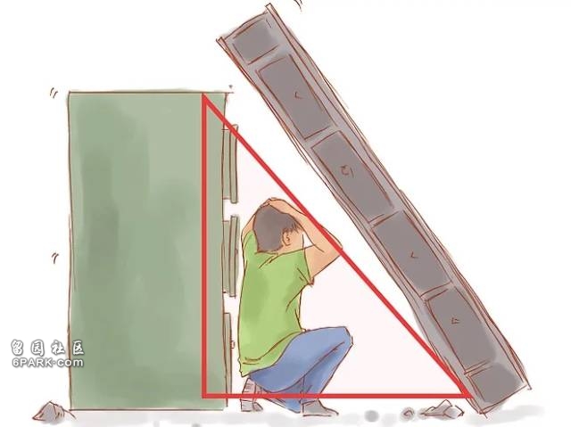 • 躲在门框下方。门框下方的死亡率是很高的,如果门的侧壁受压倒下,很可能会致死。