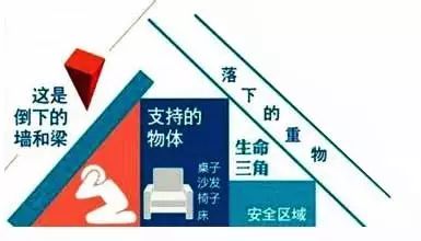 “生命三角”理论指的是,在家具(如沙发)旁边(不是下方)避难的人,在墙体、天花直落倒塌时,往往可以被墙体、家具构建出来的三角形空间保护住。