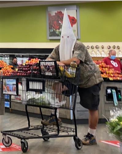 地方政府积极规画重启经济活动之际,包括超级市场、量贩店在内许多业者,纷纷要求消费者必须戴口罩。加州圣地牙哥郡(San Diego County)日前有一名男子戴着奉行白人至上主义的三K党白色头罩在超市里购物,引起民众侧目。当地警方表示,已针对此案展开调查。