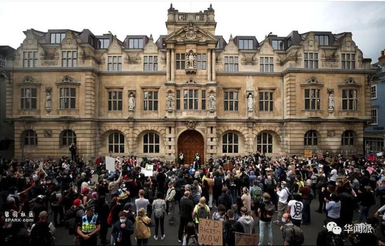 同一天,上千名示威者聚集在牛津大学奥里尔学院(Oriel College)前,要求推倒学院建筑上的塞西尔·罗德(Cecil Rhodes)雕像。活动计划从下午五点到七点,但到了结束时间,人群还久久不愿散去。