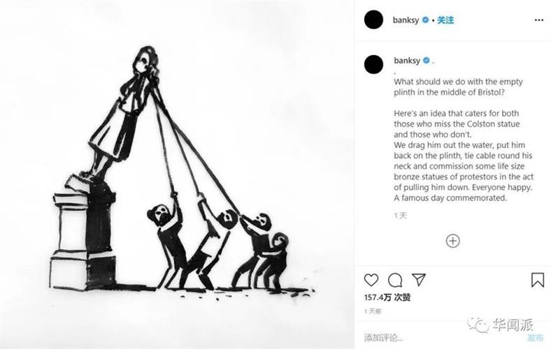 英国著名涂鸦艺术家、布里斯托人班克西为如何安置雕像想了一个“好办法”。他建议把推倒的雕像重新安置回去,把这些希望推倒雕像的人也融进雕像里,建造一座新的雕像。他为自己的构想发了一个Ins。