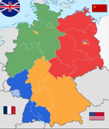 东西德的分离,还得从军国主义势力说起。由于纳粹德国的残忍暴行,二战结束之后,根据波茨坦会议中英、美、法、苏的共同协议,决定将战败后的德国一分为四,分别有四个战胜国占领。虽然是一分为四,但共同成立“盟国管制理事会”处理德国事务。