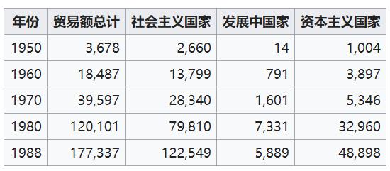 ▲东德20世纪50年代至80年代对外贸易额情况,社会主义国家完全占据上风。不止是西德对立,对西方阵营其他国家亦是如此