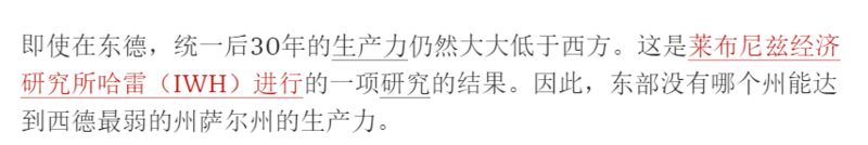 ▲东德甚至没有一个地区的生产力能够匹配得上西德最弱的州