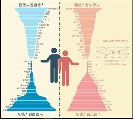 生产力的落后,让东德在经济、文化等社会发展上,依然和西德有着相当大的差距。而这样的差距,也给双方的内心活动,带来微妙的变化。在一次对东西德对彼此看法的调查中,就能很清晰地看到这样一个情况。