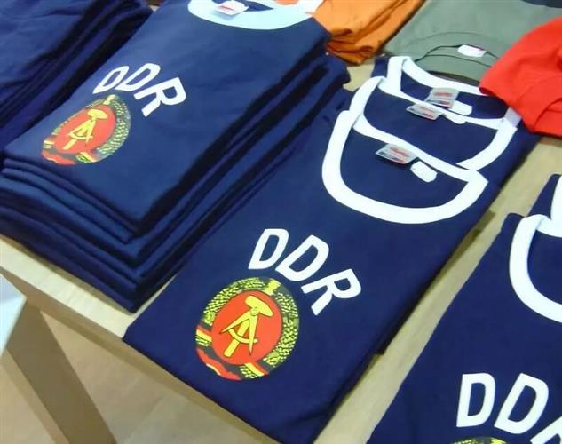 ▲在现在柏林的市场上,仍可以看到印有“DDR(东德)”字样的足球服出售