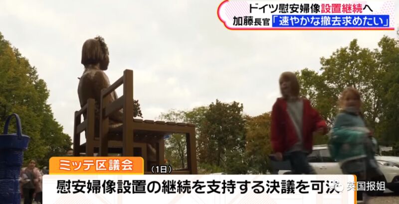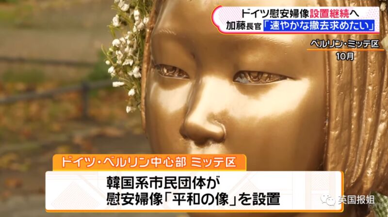 雕像是9月末设立的,很快日本政府就得知消息,要求德国撤销雕像。理由是什么呢,“雕像的主张太过片面、很难说是符合史实,这是基于不正确信息对日本进行批判活动的象征。”