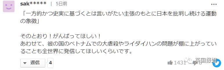 希望日本争争气。而且说起来,他们国家搞的越南屠杀、越战韩越混血儿问题,也希望赶紧拿到全世界面前给大家看看是什么德性。”