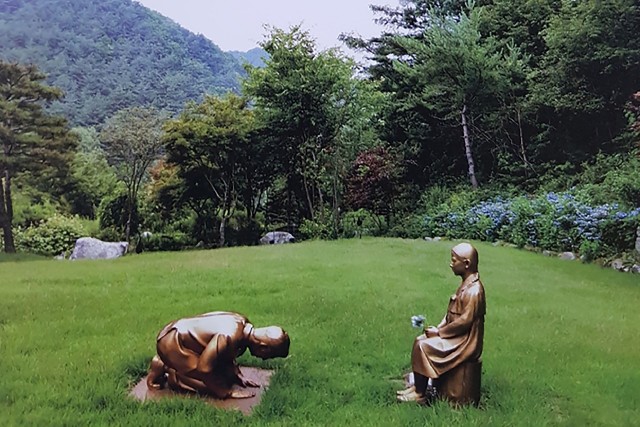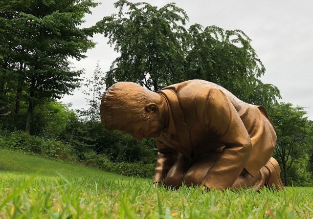 据日本共同社6月20日报道,设有象征慰安妇问题的少女像和以日本前首相安倍晋三为原型的下跪谢罪像的韩国私立“韩国自生植物园”园长金昌烈透露,探讨在东京举办两座人像的展示会。