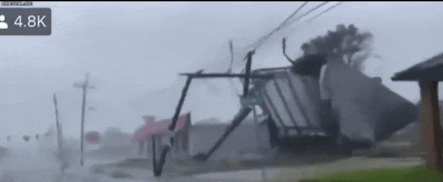 飓风“艾达”在路易斯安那州的侯马登陆后不久就“掀起”了一个巨大的屋顶。极端气象学家里德·蒂默(Reed Timmer)在Facebook上拍摄的视频显示,巨大的屋顶撞到了附近的一根电线杆上,碎片四处散落,而这只是展示了巴尤州南部大面积破坏的一小部分。