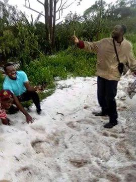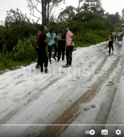 在喀麦隆西部的两个市,居然不约而同发生了“人间奇景”——天上下起了白雪,把路上的道路和树林里的植被覆盖了!