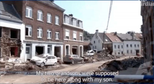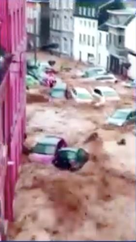 比利时的小镇被水淹,淹到房子车子都被洪水冲走了,