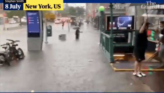 纽约也遭到了历史性猛烈降雨,纽约地铁都变成“水帘洞”…