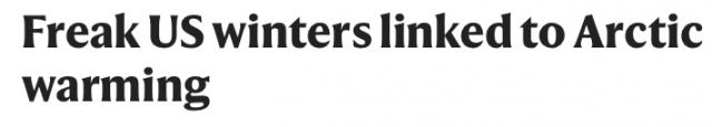 同时,科学家预测,因为北极的升温、历史性融冰,因为一系列气候事件叠加反应的原因,事实上反而北半球各国的冬天会比过去更加严寒。