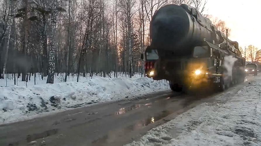 当地时间2023年3月29日,俄罗斯,俄罗斯武装部队的“亚尔斯”洲际导弹发射车正在一个秘密地点行驶。
