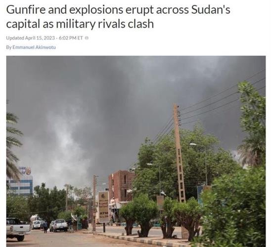 据多家外媒报道,苏丹武装部队与快速支援部队15日发生交火,喀土穆多地传出枪声和爆炸声。