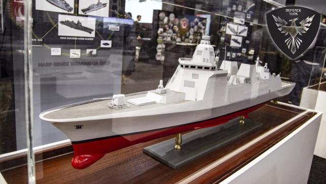随着土耳其军工技术的进步,土耳其还正在推进TF-2000型护卫舰项目,这是一款大型护卫舰,满载排水量约6500吨,配备相控阵雷达、垂直发射系统,在土耳其海军中的定位是主力防空舰。在2019年的土耳其国际防务展上,土耳其首次展示了TF-2000型护卫舰,从模型上看,该舰配备了127毫米主炮、64单元垂直发射系统、2座“密集阵”近防系统和反舰导弹,并且集成了当下流行的综合桅杆,整体设计和武器装备对标国际一流大型护卫舰。