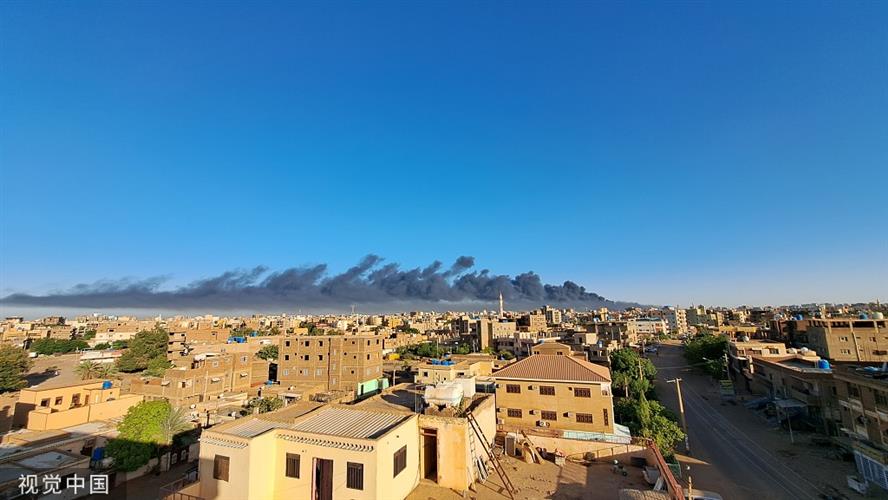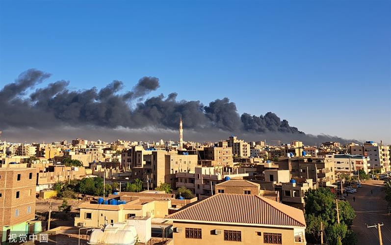 当地时间2023年4月19日,苏丹喀土穆,苏丹武装部队和苏丹快速支援部队(RSF)发生冲突,硝烟四起。