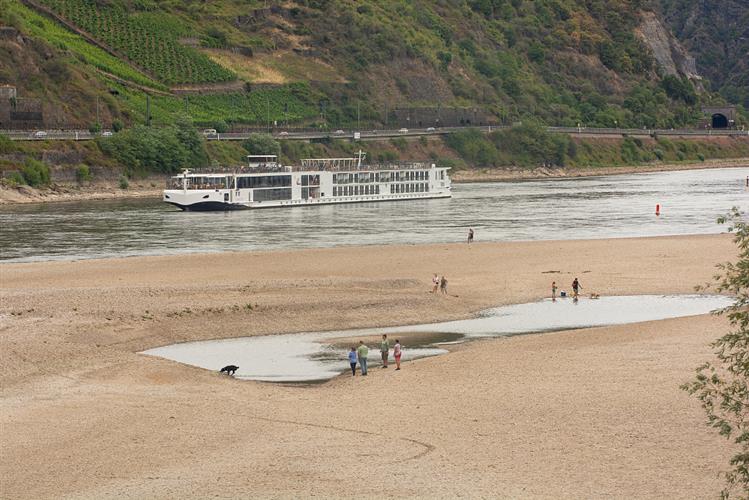 当地时间2022年7月31日,受高温和干旱影响,德国莱茵河水位下降。视觉中国 资料图