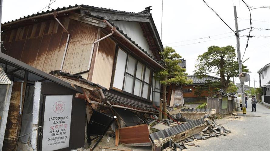 当地时间2023年5月5日,日本石川县发生地震,房屋倒塌。视觉中国 图