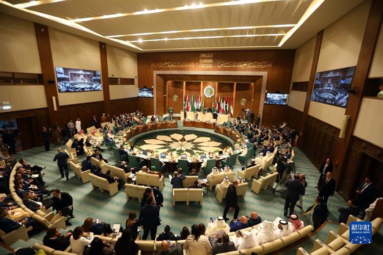 这是5月7日在埃及开罗拍摄的阿拉伯国家联盟外长级特别会议现场。新华社发(艾哈迈德·戈马 摄)