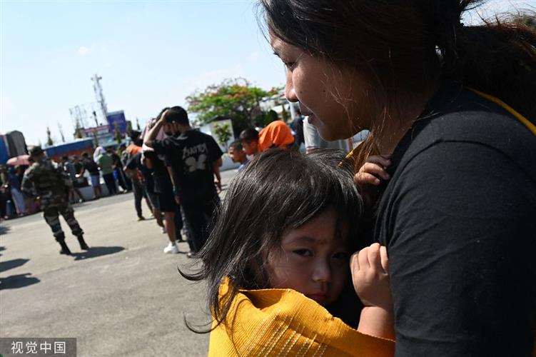 当地时间2023年5月7日,印度曼尼普尔邦英帕尔,当地爆发族群冲突,人们在英帕尔机场排队等待印度军队发放食物。 视觉中国 图