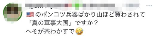 另一方面,有网友讽刺称,“光买堆积如山的美国缺陷武器就说自己要成‘真正的军事大国’吗?真是‘用肚脐眼泡茶’(编者注:日本俗语,用于形容荒诞无稽的事物)”。