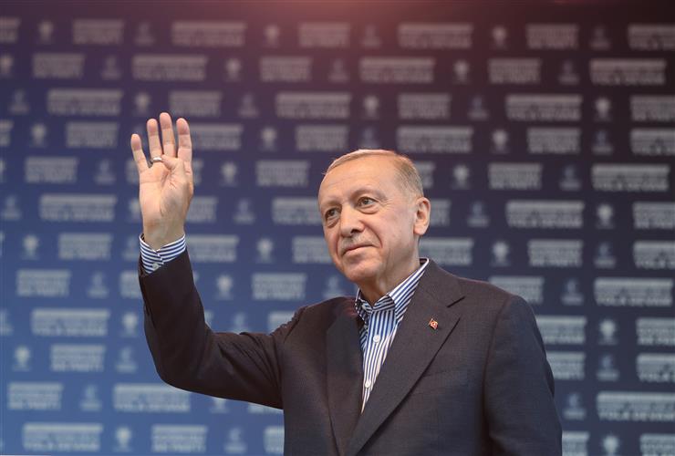 当地时间2023年5月10日,土耳其马尔丁举行竞选集会,现总统埃尔多安向人群致意。视觉中国 图