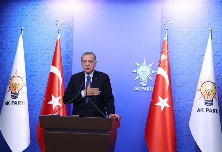 当地时间2023年5月17日,土耳其安卡拉,土耳其总统埃尔多安在安卡拉的总统大楼与党内省级领导人、代表、市长和议会候选人举行视频会议。 视觉中国 图