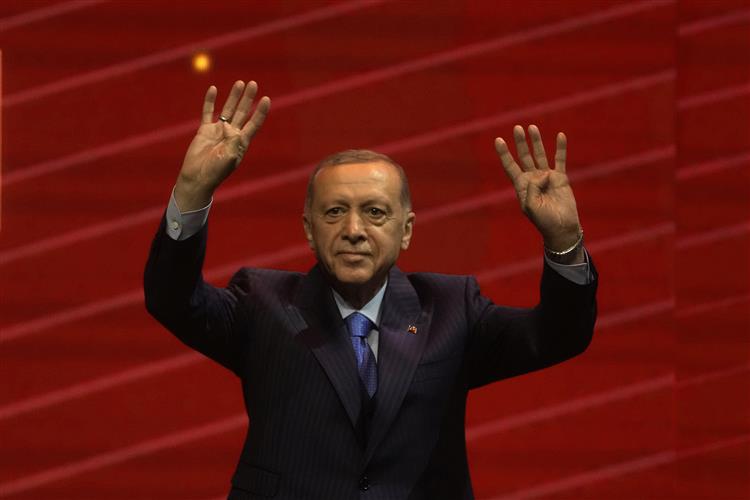 当地时间2023年5月22日,土耳其伊斯坦布尔,现任总统埃尔多安在竞选集会上向他的支持者挥手致意。视觉中国 图