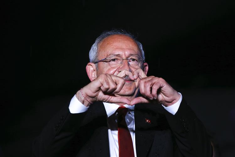 当地时间2023年5月12日,土耳其安卡拉,反对党共和人民党领袖凯末尔·克勒奇达尔奥卢在竞选集会上向支持者致意。视觉中国 图
