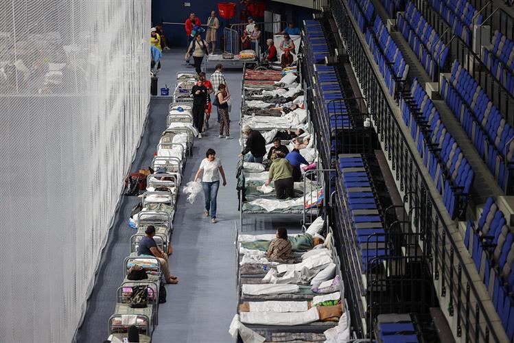 当地时间2023年6月1日,俄罗斯别尔哥罗德,别尔哥罗德育场被改造成临时住所,在乌克兰的大规模炮击后,人们从舍别基诺撤离。视觉中国 图