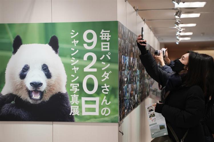 2月17日,人们在日本东京参观“920日香香摄影展”时拍照。“920日香香摄影展”展出了日本大熊猫摄影师高氏贵博拍摄的大熊猫“香香”。展览从高氏的10万张照片中精选出920张,记录了2017年12月19日至2022年11月27日期间他与“香香”见面的920天。新华社记者张笑宇摄