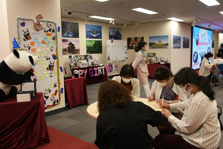 6月12日,在日本东京中国文化中心,人们给“香香”写生日祝福。新华社记者岳晨星摄