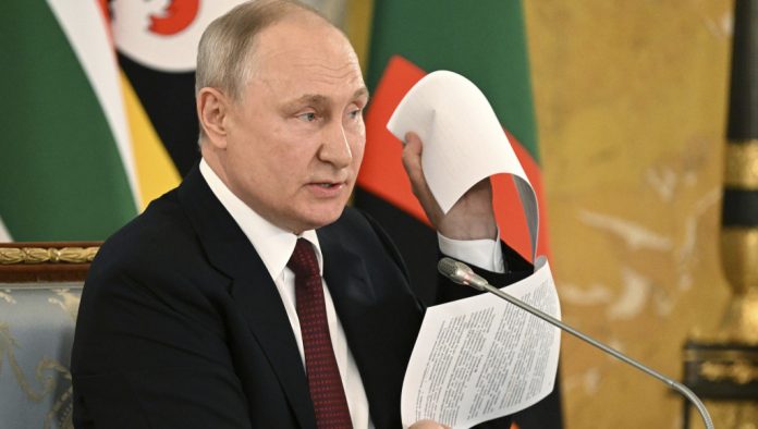 普京称,双方在去年3月签署协议草案之后,俄军按照协议规定从基辅附近撤离,乌克兰随后却拒绝承认协议。他指责乌克兰应为谈判破裂负责,“在我们遵照承诺撤离基辅之后,乌克兰就把草案扔进了垃圾箱。他们放弃了一切。如何保证他们将来也不会背弃协议?但即使如此,我们也从未拒绝谈判。”在普京公布这份协议草案之际,来自非洲7国的“和平代表团”17日到访俄罗斯,与俄方讨论有关和平解决乌克兰问题的倡议。(据都市网)