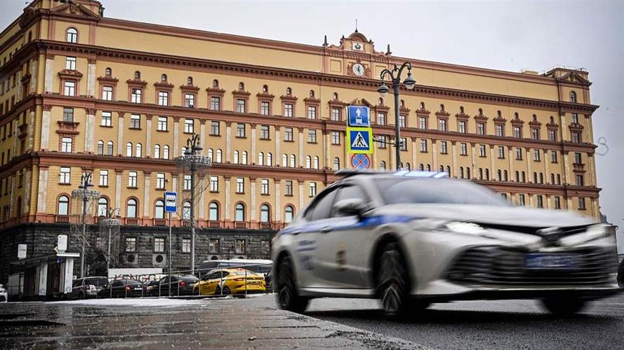 当地时间2023年3月3日,俄罗斯莫斯科,一辆警车经过俄罗斯联邦安全局总部和它前面的卢比扬卡广场。视觉中国 资料图