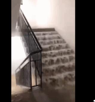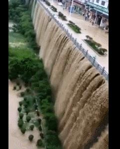 贵州农贸市场,发生严重内涝,整街50多间店铺被淹。洪水穿过街道,从堤坝涌入乌江,形成了一条近千米宽的瀑布。![]()