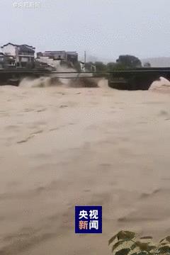 黄山屯溪建于明代的镇海桥被冲毁;![]()